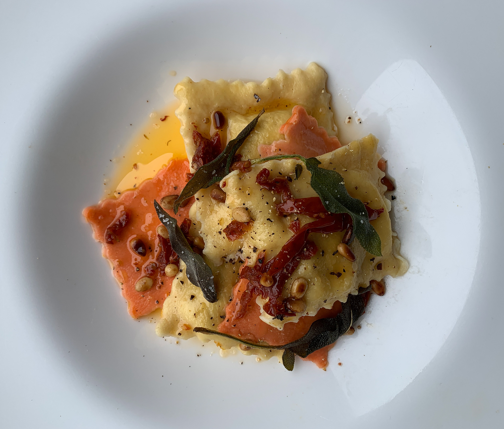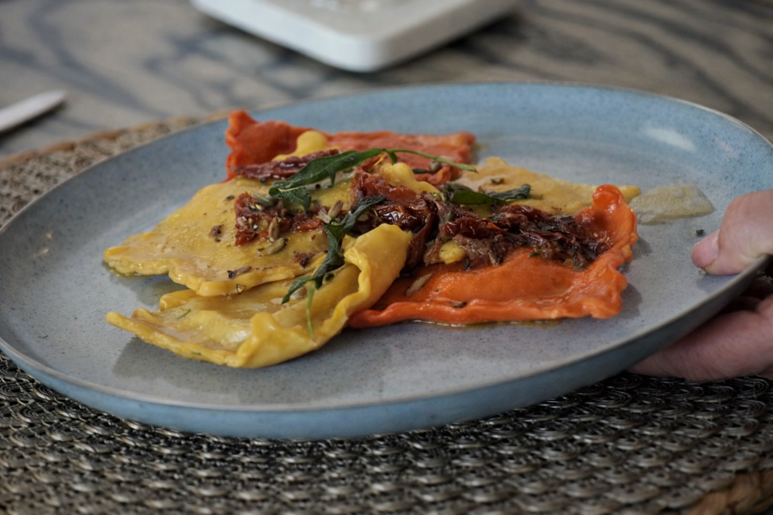 Handmade, hand dyed pumpkin and sage ravioli (s.1 ep.2 & 4)